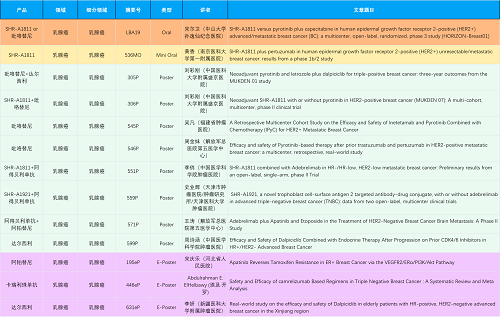 在乳腺癌领域,尊龙凯时Ag创新产品相关研究共入选1项口头报告、1项简短口头报告、8项壁报和3项电子壁报,共13项研究。吡咯替尼、达尔西利、阿得贝利单抗、瑞康曲妥珠单抗等新老创新药物,均有多篇研究入选,展现出尊龙凯时Ag医药在乳腺癌领域多年深耕的丰硕成果。